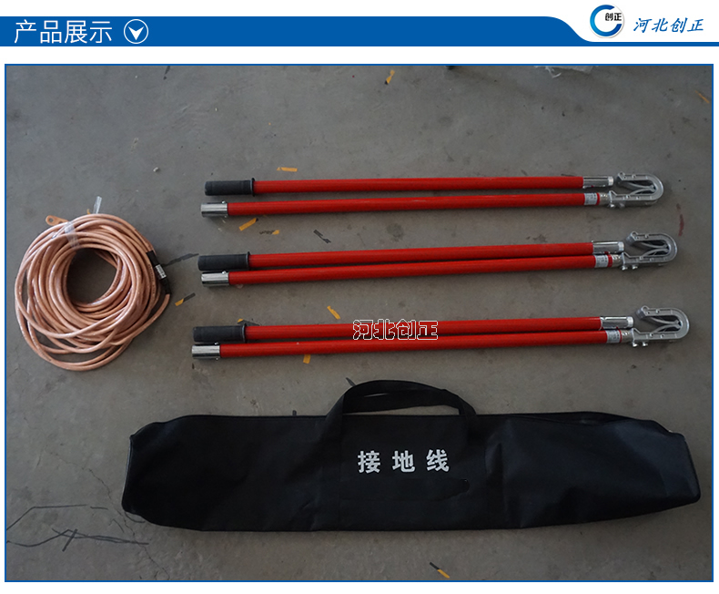 (3)制作工藝: 導(dǎo)線夾、接地夾采用鋁合金或紫銅壓鑄成形;操作棒是玻璃鋼環(huán)氧樹脂管;接地軟銅線采用多股軟銅線絞合而成,外覆透明絕緣護(hù)層。