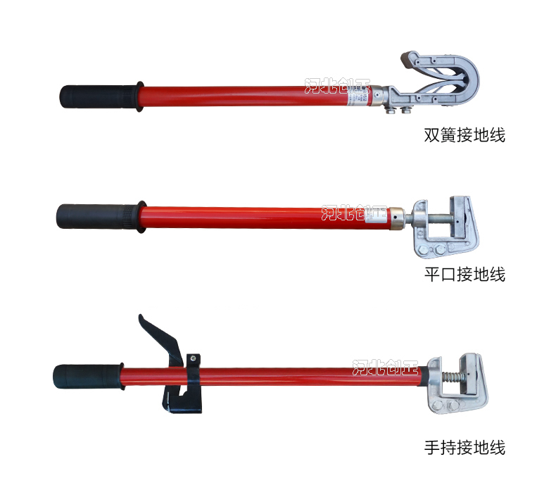 (4)接地軟銅線有分相式和合相式,接地棒有平口螺旋式、手握式、圓口式、雙簧卡口式、猴頭式等。